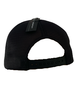 Black 110 snapback cap, one size fits all.
